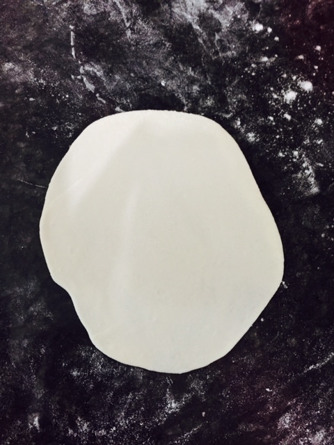 After rolling it into small circles, take it in your palm and put 1-2 tsp of your filling on it.